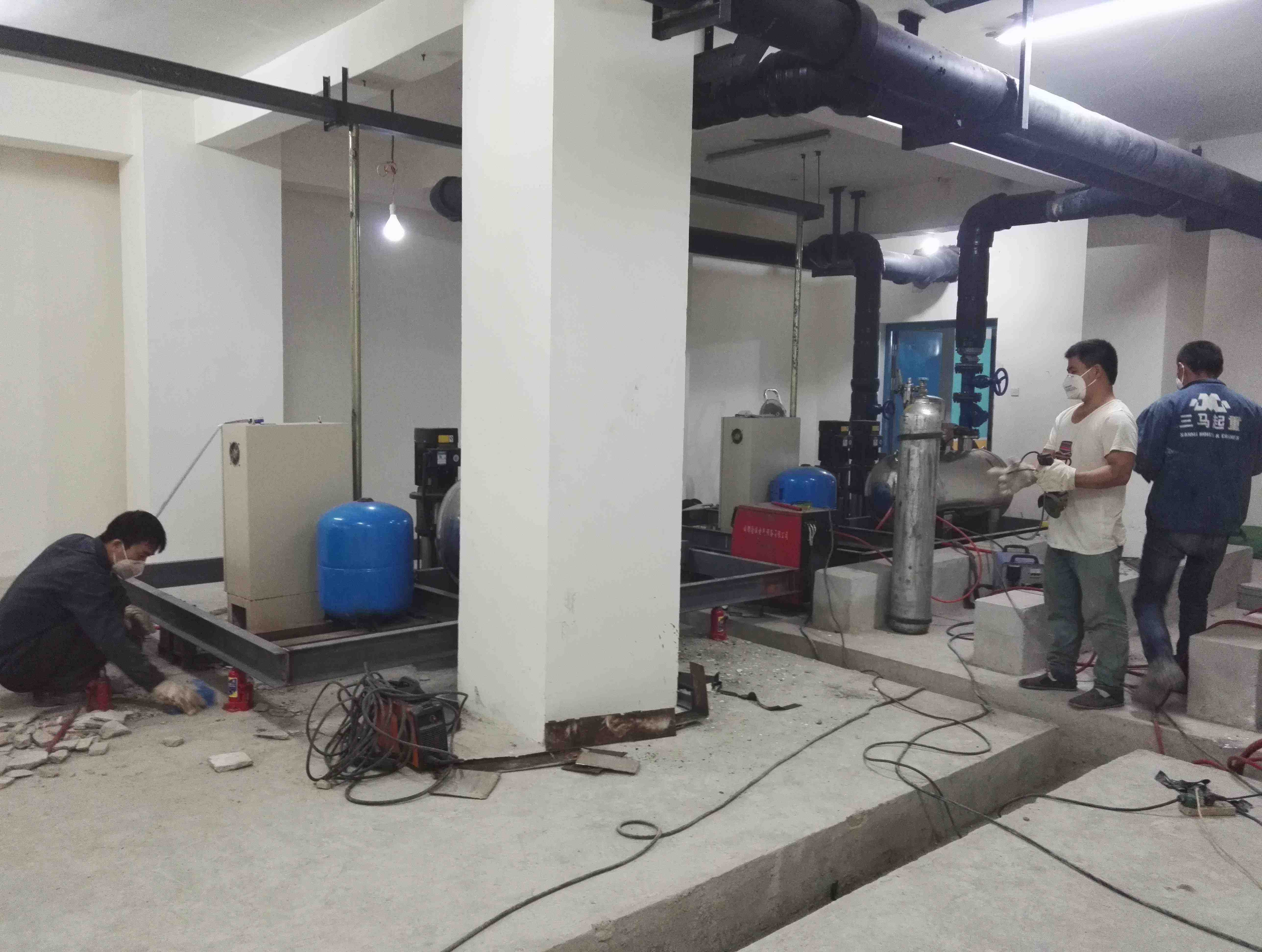 成都金欣苑小區(qū)水泵房總共有三套水泵機組,位于地下室負二樓(地下室共負三樓,均不同程度出現(xiàn)低頻噪聲,機組運行時產生的低頻振動噪聲和供水管道的低頻振動噪聲順著四周墻壁、柱頭向樓上傳遞,干擾業(yè)主的正常休息,受該公司邀請,我們成都鼎三豐環(huán)保工程有限公司聲學工程師與甲方工程師對現(xiàn)場進行了實際勘察,在地下室機房里感覺噪聲并不特別大,但地面、墻體發(fā)麻,基礎振動明顯,業(yè)主反映上午午?7:00~8:00,夜間?22點-24?點噪聲明顯,一直影響到3樓住戶。